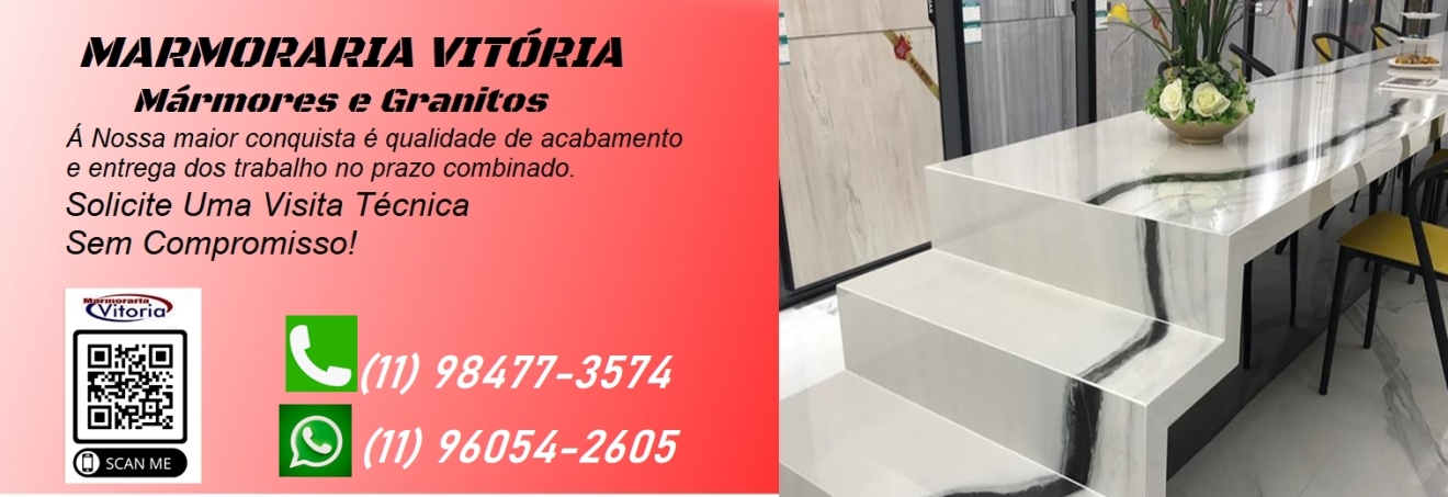 MARMORARIA VITORIA ® Mármores e granitos é uma empresa que atua no mercado de mármores e granitos, nacionais e importados, entre outras pedras ornamentais como, Marmistone , Quartzo, Ônix e também, o porcelanato.
